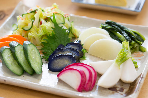 漬物に使われる素材は非常に幅広く、代表的なものだけでも大根、きゅうり、白菜、なす、生姜などが挙げられる。それぞれの野菜には水分量、繊維の硬さ、皮の厚みといった個性があり、これらが漬かりやすさや仕上がりの食感に大きく影響する。例えば水分の多いきゅうりは短時間で味が入りやすく、浅漬けに向いている一方、大根は内部まで味を含ませるために時間や下処理が重要になる。このように、素材選びの段階から漬物づくりは始まっている。