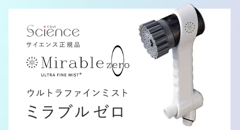 ミラブルゼロはサイエンス社が展開するウルトラファインバブルを活用したシャワーヘッドシリーズの一つで、従来モデルよりもミストの性能や節水性が改良された製品です。