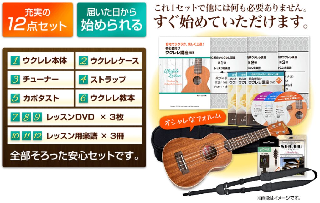 本講座セット 中価格 ウクレレ・ケース・チューナー・教本・DVD メールサポート・教材ダウンロード