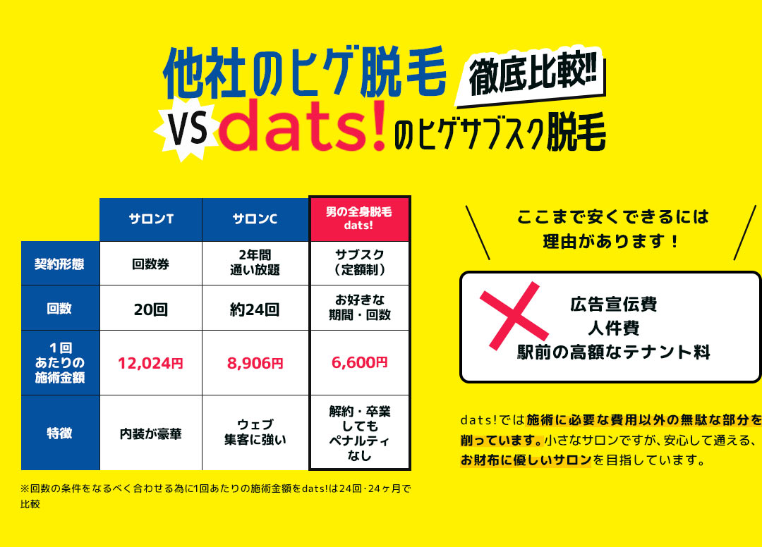 サブスクでお得に通うなら、男の全身脱毛dats!。