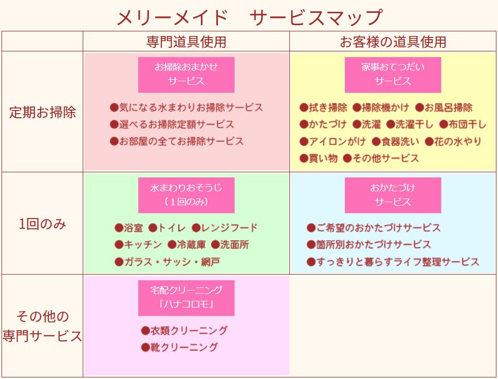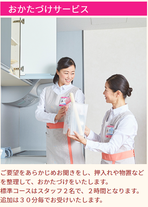 日常的な家事を専門スタッフが代行してくれるサービスです。