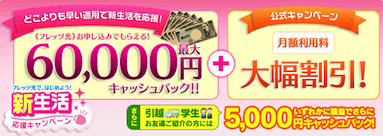 開通後に指示通り申請したところ、約2ヶ月でキャッシュバックが振り込まれました。