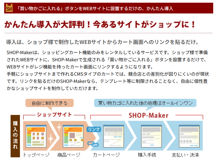 SHOP-Makerは既存サイトにそのまま導入できるため、まずは条件を確認して登録を進めるのがおすすめです。