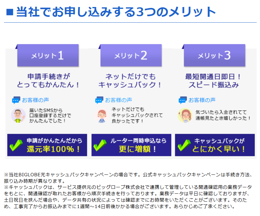 代理店経由で申し込み、開通確認後すぐに振込されました。手続きも電話で完結したのでとてもスムーズでした。