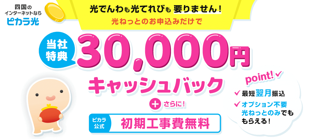 工事費用・初期費用・実質無料になる条件と代理店特典・キャッシュバック
