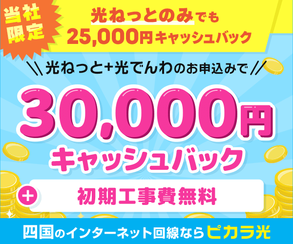 ピカラ光(Pikara光)のサービス概要:回線・プロバイダ・提供エリア(四国・徳島中心)