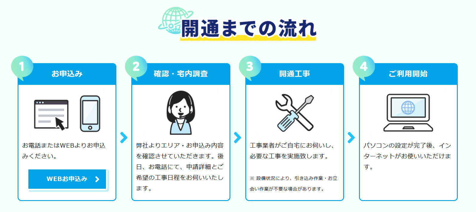 申し込み〜開通までの流れ(工事日程・ホームゲートウェイ交換・開始の目安)