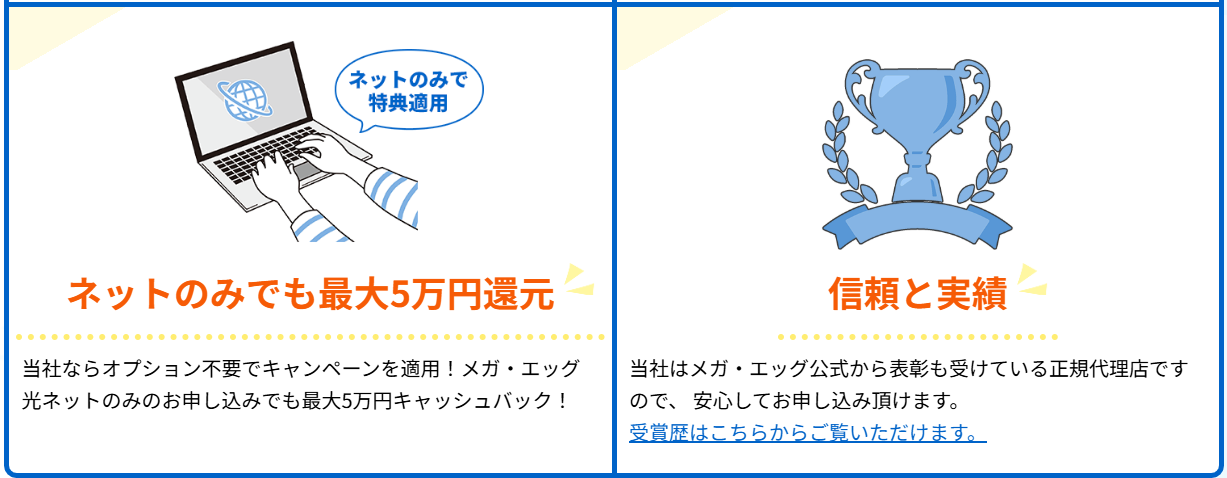 MEGA・EGGの主なメリット(業界最安級の料金・エリア特化・セット割)