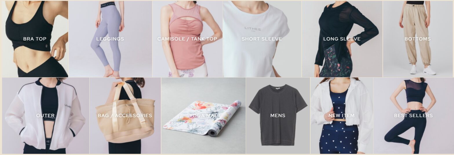 LITHEEはモード感のある上質なヨガウェアを中心に展開するブランドで、機能性とデザイン性の両立を重視しています。